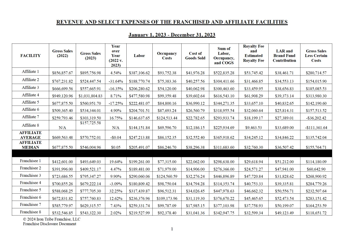 Please refer to the Item 19 of the 2024 FDD for additional details