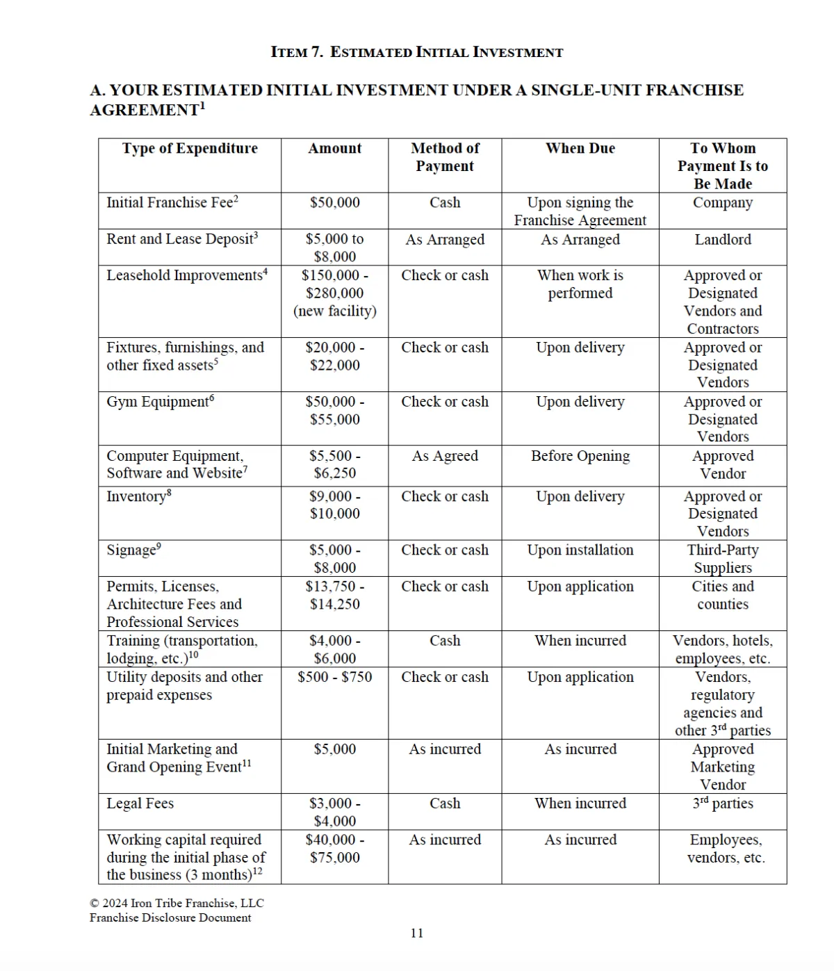 Please refer to the Item 7 of the 2024 FDD for additional details